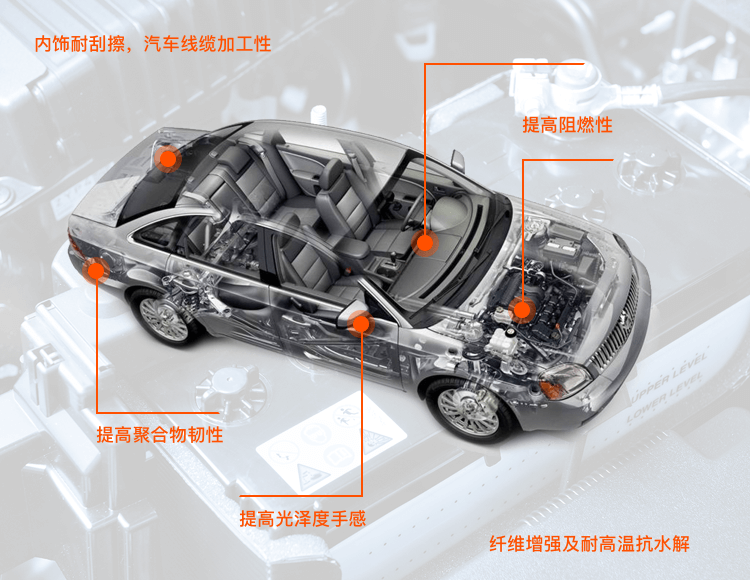 功能助劑 應用在改性塑料加工,無鹵阻然電纜料、彈性體、產中提高爽滑性、潤滑母粒等功能性母粒使用。